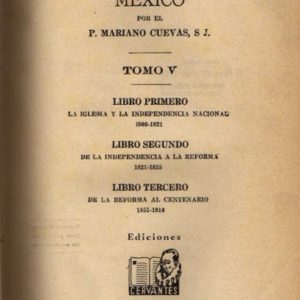 HISTORIA DE LE IGLESIA EN MEXICO. TOMO V. LIBRO PRIMERO. LA IGLESIA Y LA INDEPENDENCIA NACIONAL. 1800-1821. LIBRO SEGUNDO. DE LA INDEPENDENCIA A LA REFORMA. 1821-1855. LIBRO TERCERO. DE LA REFORMA AL CENTENARIO.