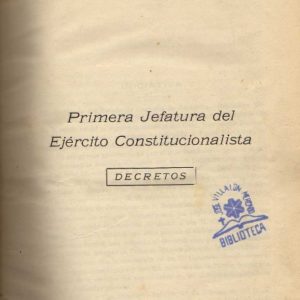 PRIMERA JEFATURA DEL EJERCITO CONSTITUCIONALISTA. DECRETOS