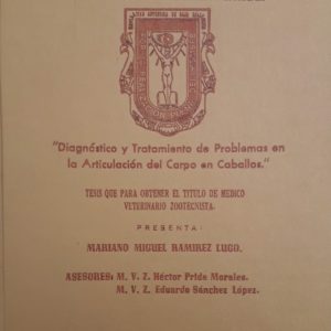 UNIVERSIDAD AUTONOMA DE BAJA CALIFORNIA. ESCUELA DE MEDICINA VETERINARIA Y ZOOTECNIA. «DIAGNOSTICO Y TRATAMIENTO DE PROBLEMAS EN LA ARTICULACION DEL CARPO EN CABALLOS». TESIS PARA OBTENER EL TITULO DE MEDICO VETERINARIO ZOOTECNISTA