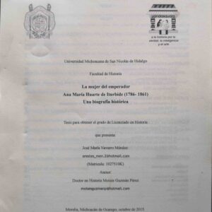 UNIVERSIDAD MICHOACAN DE SAN NICOLAS DE HIDALGO. FACULTAD DE HISTORIA. LA MUJER DEL EMPERADOR ANA MARIA HUARTE DE ITURBIDE (1786 – 1861) UNA BIOGRAFIA HISTORICA. TESIS PARA OBTENER EL GRADO DE LICENCIADO EN HISTORIA QUE PRESENTA: JOSE MARIA NAVARRO MENDEZ