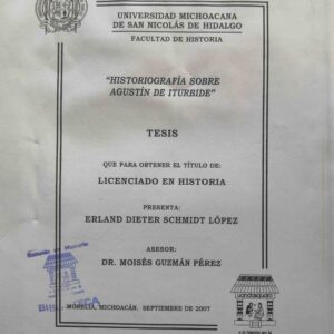 UNIVERSIDAD MICHOACANA DE SAN NICOLAS DE HIDALGO. FACULTAD DE HISTORIA. HISTOTIOGRAFIA SOBRE AGUSTIN DE ITURBIDE. TESIS QUE PARA OBTENER EL TITULO DE LICENCIADO EN HISTORIA. PRESENTA: ERLAND DIETER SCHMIDT LOPEZ. ASESOR: DR. MOISES GUZMAN PEREZ