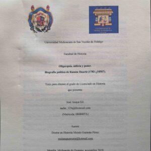 UNIVERSIDAD MICHOACANA DE SAN NICOLAS DE HIDALGO. FACULTAD DE HISTORIA. OLIGARQUIA, MILICIA Y PODER. BIOGRAFIA POLITICA DE RAMON HUARTE (1782-¿1850?). TESIS PARA OBTENER EL GRADO DE LICENCIADO EN HISTORIA QUE PRESENTA: JOSE ANAYA GIL