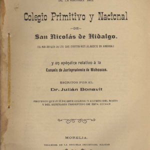 FRAGMENTOS DE LA HISTORIA DEL COLEGIO PRIMITIVO Y NACIONAL DE SAN NICOLAS DE HIDALGO (EL MAS ANTIGUO DE LOS QUE EXISTEN ACTUALMENTE EN AMERICA) Y UN APENDICE DE JURISPRUDENCIA DE MICHOACAN