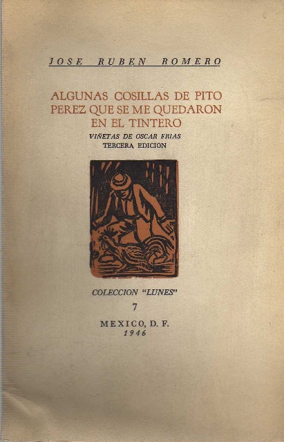 AUTOR: ROMERO (JOSE RUBEN)EDITOR: COLECCION LUNESEDICIÓN: TERCERA EDICIONAÑO: 1946LUGAR: MEXICO D. F.PAÍS: MEXICOPÁGINAS: 36 PP.TEMARIO: LITERATURA MEXICOID: 2896