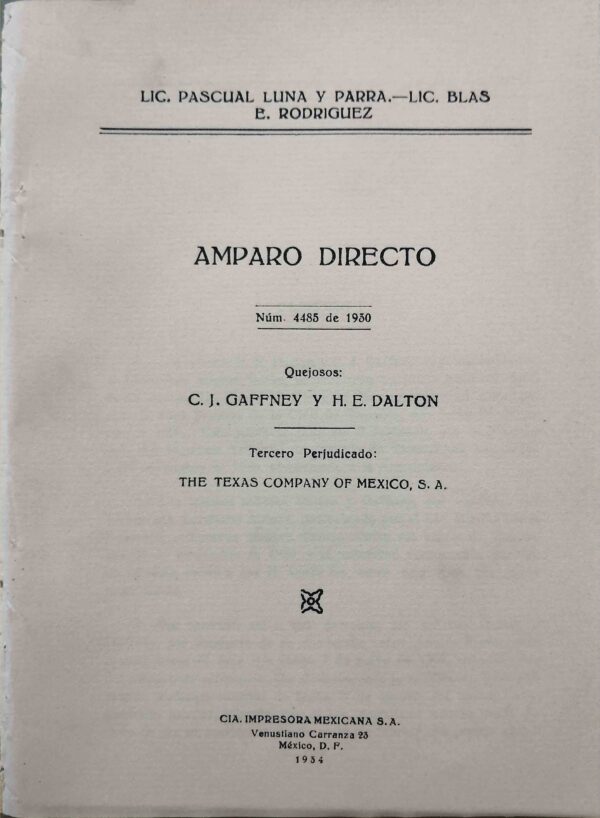 AMPARO DIRECTO. NUM. 4485 DE 1930. QUEJOSOS: C. J. GAFFENEY Y H. E. DALTON. TERCERO PERJURIO: THE TEXAS COMPANY OF MEXICO, S. A.