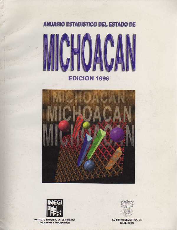 AUTOR: S. A.EDITOR: INEGI/GOBIERNO DEL ESTADOEDICIÓN: S. E.AÑO: 1996LUGAR: AGUASCALIENTES, AGS.PAÍS: MEXICOPÁGINAS: 434 PP.TEMARIO: MICHOACANID: M145