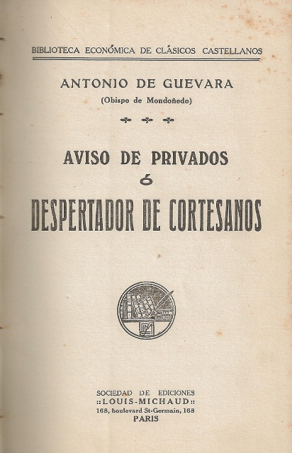 AUTOR: GUEVARA (ANTONIO DE)EDITOR: SOCIEDAD DE EDICIONES LOUIS MICHAUDEDICIÓN: S. E.AÑO: S. A.LUGAR: PARISPAÍS: S. P.PÁGINAS: 271 PP.TEMARIO: LITERATURA MUNDIALID: 4454