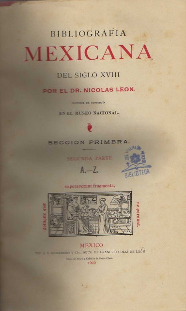 AUTOR: LEON (NICOLAS) EDITOR: IMPRENTA DE FRANCISCO DIAZ DE LEON EDICIÓN: S. E. AÑO: 1903 LUGAR: S. L. PAÍS: MEXICO PÁGINAS: 952 PP. TEMARIO: HISTORIA GENERAL DE MEXICO ID: 4154