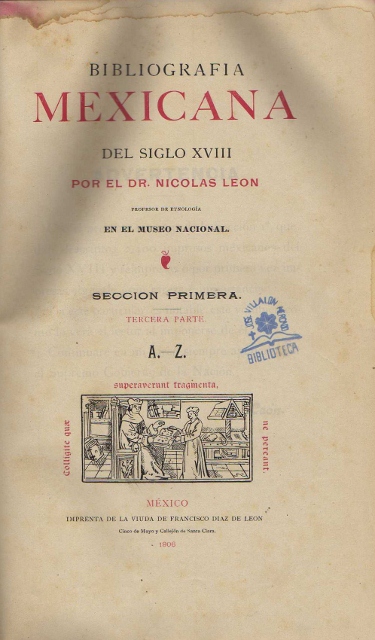AUTOR: LEON (NICOLAS) EDITOR: IMPRENTA DE FRANCISCO DIAZ DE LEON EDICIÓN: S. E. AÑO: 1906 LUGAR: S. L. PAÍS: MEXICO PÁGINAS: 607 PP. TEMARIO: HISTORIA GENERAL DE MEXICO ID: 4156