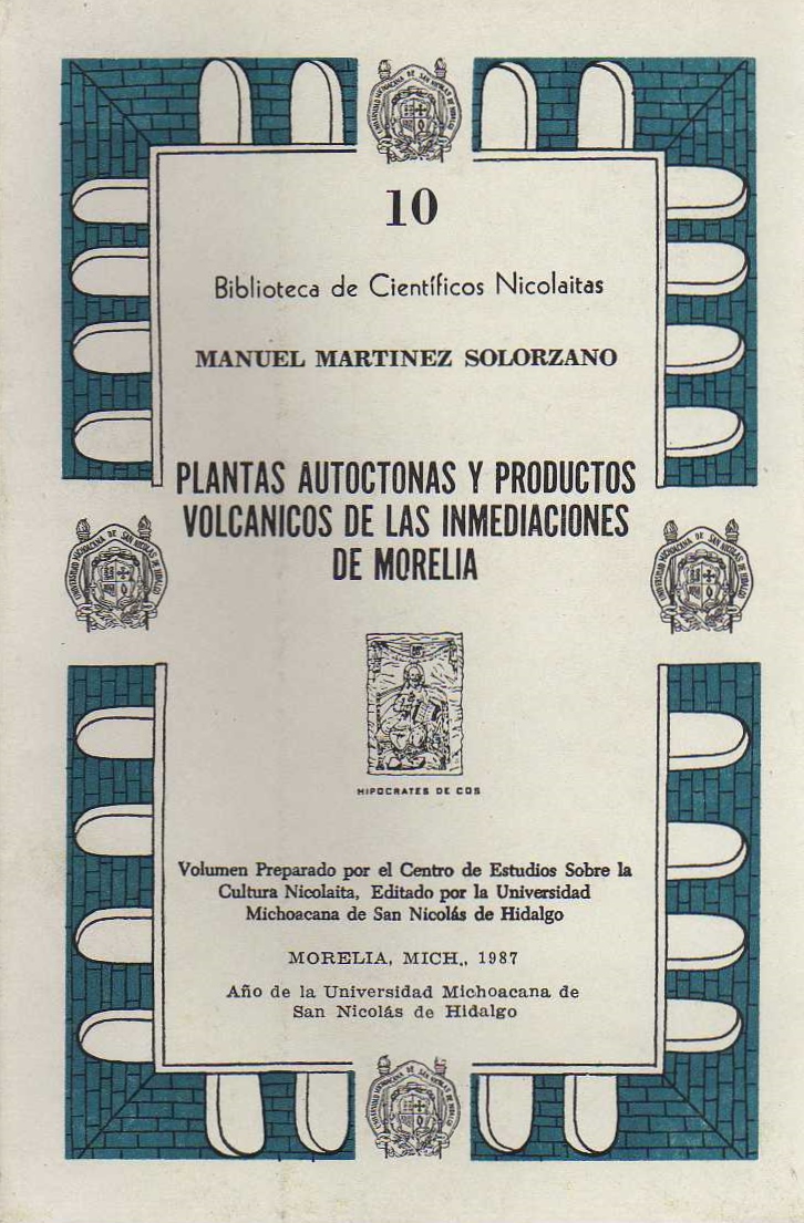 BIBLIOTECA DE CIENTIFICOS NICOLAITAS. 10. PLANTAS AUTOCTONAS Y PRODUCTOS VOLCANICOS DE LAS INMEDIACIONES DE MORELIA.