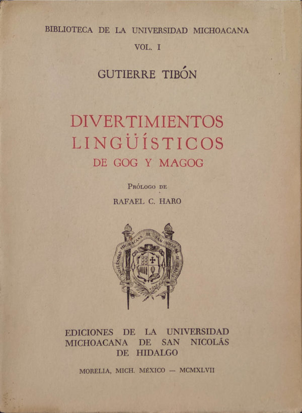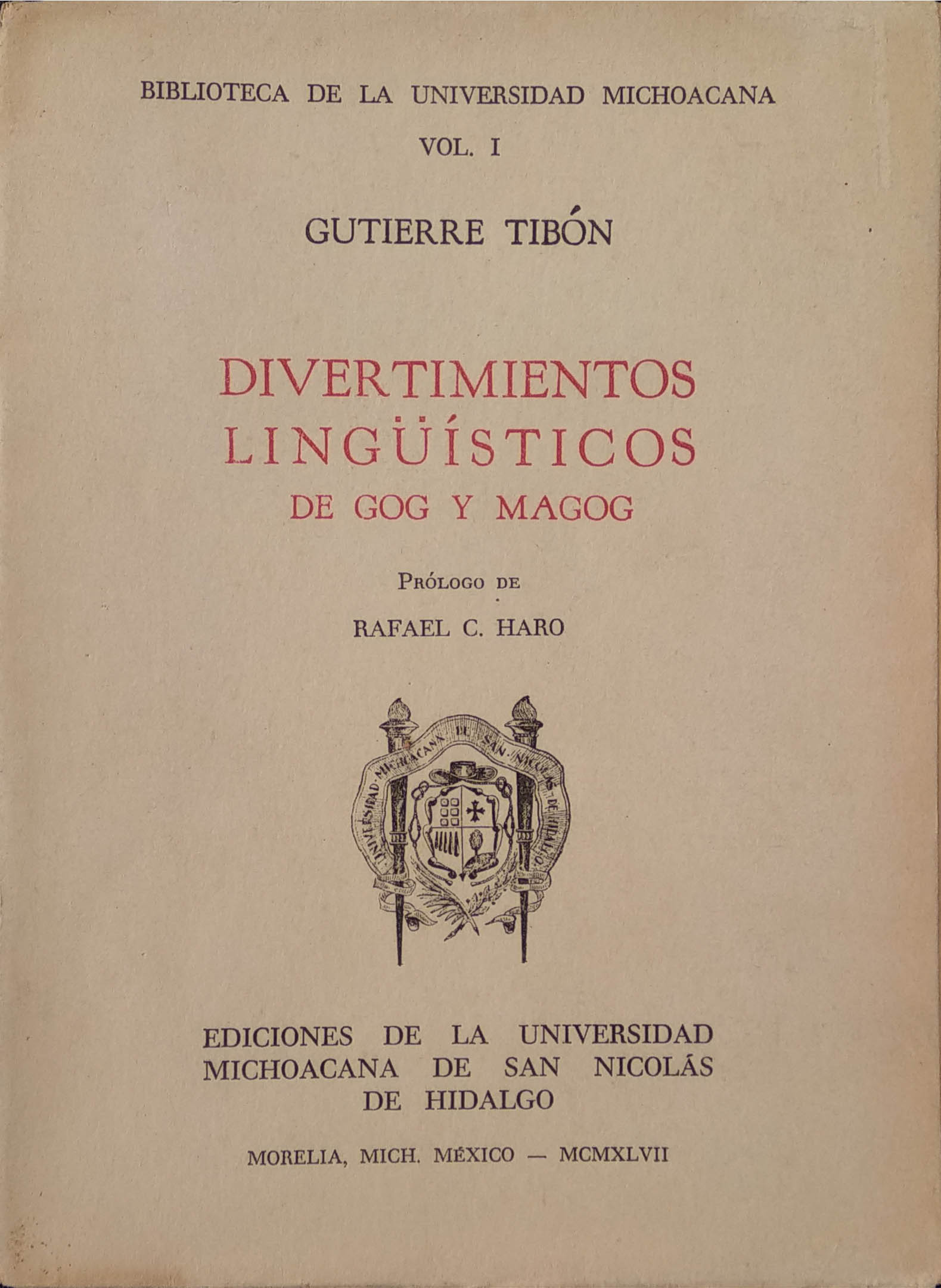BIBLIOTECA DE LA UNIVERSIDAD MICHOACANA. VOL. I. DIVERTIMIENTOS LINGUISTICOS DE GOG Y MAGOG