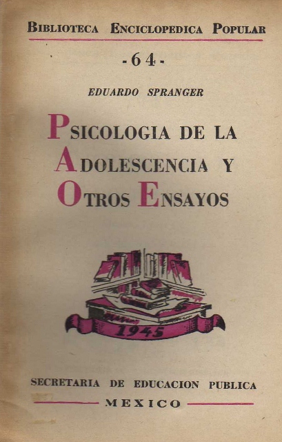 AUTOR: SPRANGER (EDUARDO)EDITOR: SEPEDICIÓN: S. E.AÑO: 1945LUGAR: MEXICO, D. F.PAÍS: MEXICOPÁGINAS: 93 PP.TEMARIO: HISTORIA GENERAL DE MEXICOID: 3713
