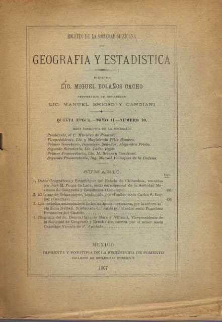 BOLETIN DE LA SOCIEDAD MEXICANA DE GEOGRAFIA Y ESTADISICA. QUINTA EPOCA. TOMO II. NUMERO 10