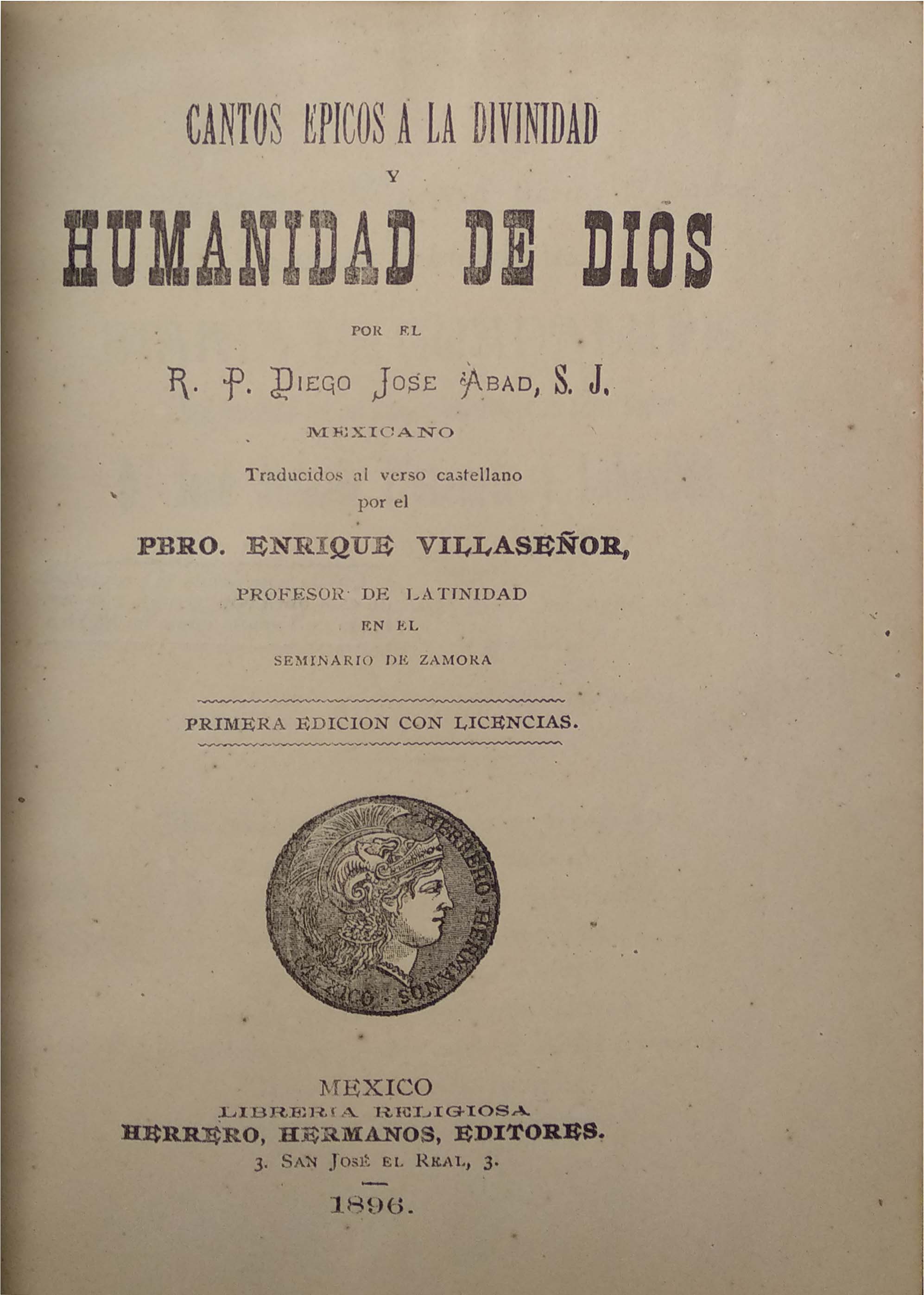 AUTOR: ABAD (DIEGO JOSE)EDITOR: HERRERO HERMANOSEDICIÓN: PRIMERA EDICIONAÑO: 1896LUGAR: S. L.PAÍS: MEXICOPÁGINAS: 343 PP.TEMARIO: ANTIGUO. RELIGIONID: M742