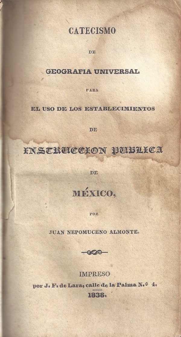CATECISMO DE GEOGRAFIA UNIVERSAL PARA EL USO DE LOS ESTABLECIMIENTOS DE INSCRICCION PUBLICA DE MEXICO, POR JUAN NEPOMUCENO ALMONTE. (TOMO SEGUNDO)