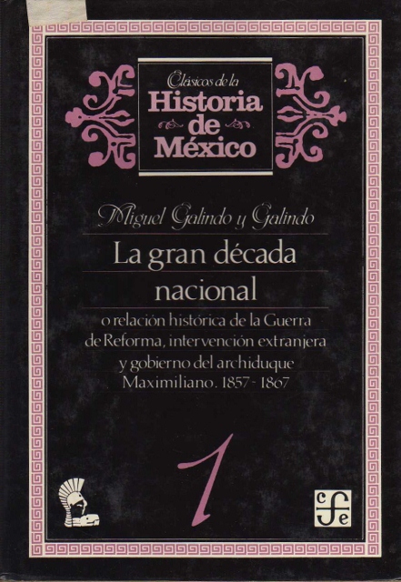 CLASICOS DE LA HISTORIA DE MEXICO. LA GRAN DECADA NACIONAL, O RELACION HISTORICA DE LA GUERRA DE REFORMA. INTERVENCION EXTRANJERA Y GOBIERNO DEL ARCHIDUQUE MAXIMILIANO. 1857-1867. TOMO 1
