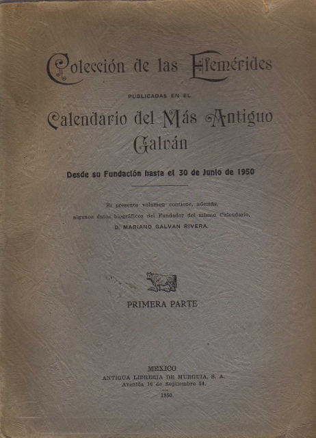 COLECCION DE EFEMERIDES PUBLICADAS EN EL CALENDARIO DE MAS ANTIGUO GALVAN DESDE SU FUNDACION HASTA EL 30 DE JUNIO DEL 1950