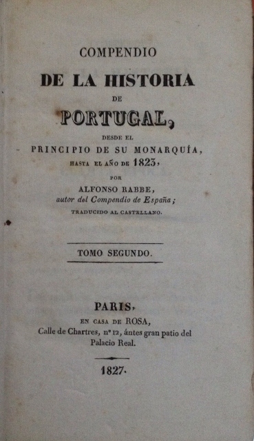 COMPENDIO DE LA HISTORIA DE PORTUGAL, DESDE EL PRINCIPIO DE SU MONARQUIA, HASTA EL AÑO DE 1823, POR ALFONSO RABNBE. TOMO SEGUNDO. TRADUCIDA AL CASTELLANO