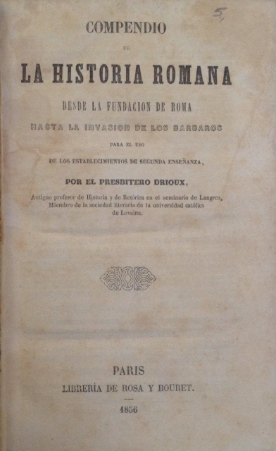 COMPENDIO DE LA HISTORIA ROMANA DESDE LA FUNCION DE ROMA HASTA LA INVASION DE LOS BARBAROS PARA EL USO DE LOS ESTABLECIMIENTOS DE SEGUNDA ENSEÑANZA