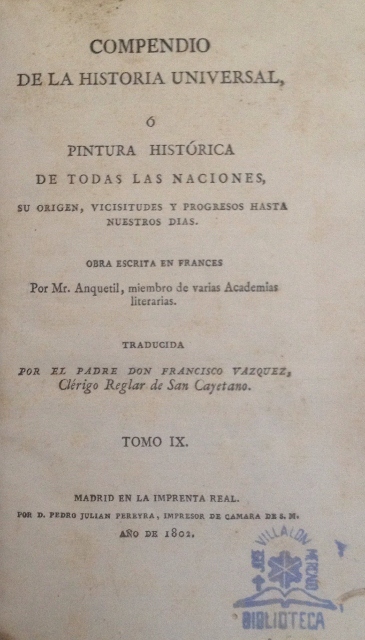 COMPENDIO DE LA HISTORIA UNIVERSAL, O PINTURA HISTORICA DE TODAS LAS NACIONES, SU ORIGEN, VICISITUDES Y PROGRESOS HASTA NUESTROS DIAS. TOMO IX