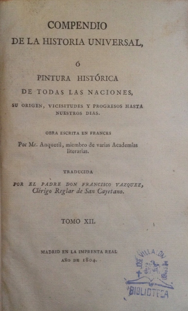 COMPENDIO DE LA HISTORIA UNIVERSAL, O PINTURA HISTORICA DE TODAS LAS NACIONES, SU ORIGEN, VICISITUDES Y PROGRESOS HASTA NUESTROS DIAS. TOMO XII