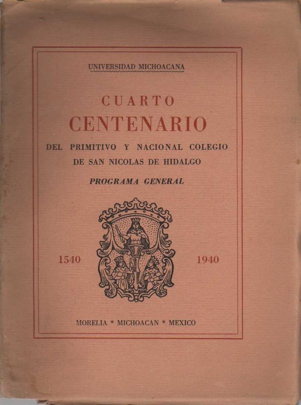 CUARTO CENTENARIO DEL PRIMITIVO Y NACIONAL COLEGIO DE SAN NICOLAS DE HIDALGO, PROGRAMA GENERAL 1540-1940