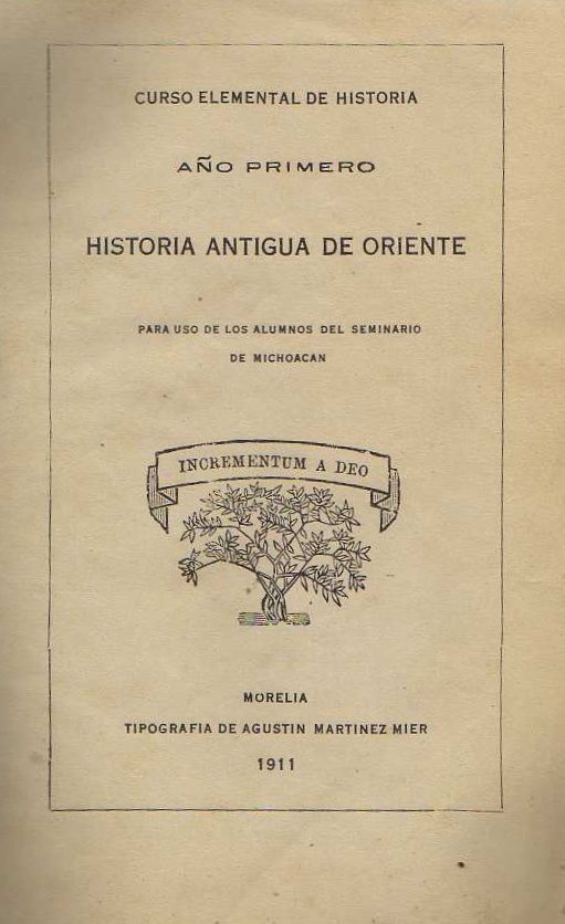 CURSO ELEMENTAL DE HISTORIA. AÑO PRIMERO. HISTORIA ANTIGUA DE ORIENTE PARA USO DE LOS ALUMNOS DEL SEMINARIO DE MICHOACAN