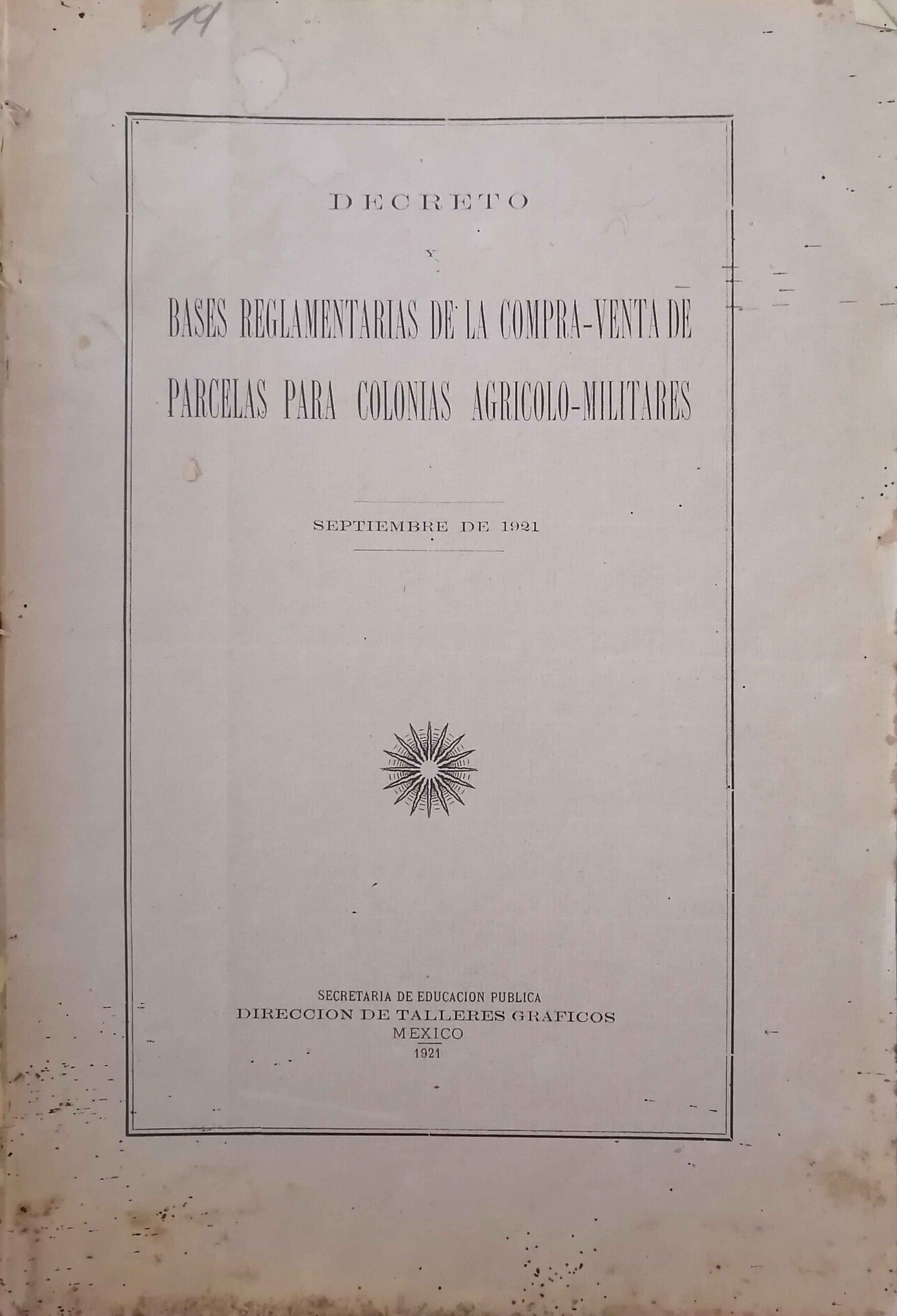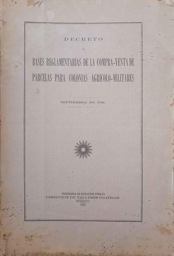 DECRETO Y BASES REGLAMENTARIAS DE LA COMPRA-VENTA DE PARCELAS PARA COLONIAS AGRICOLO-MILITARES. SEPTIEMBRE DE 1921