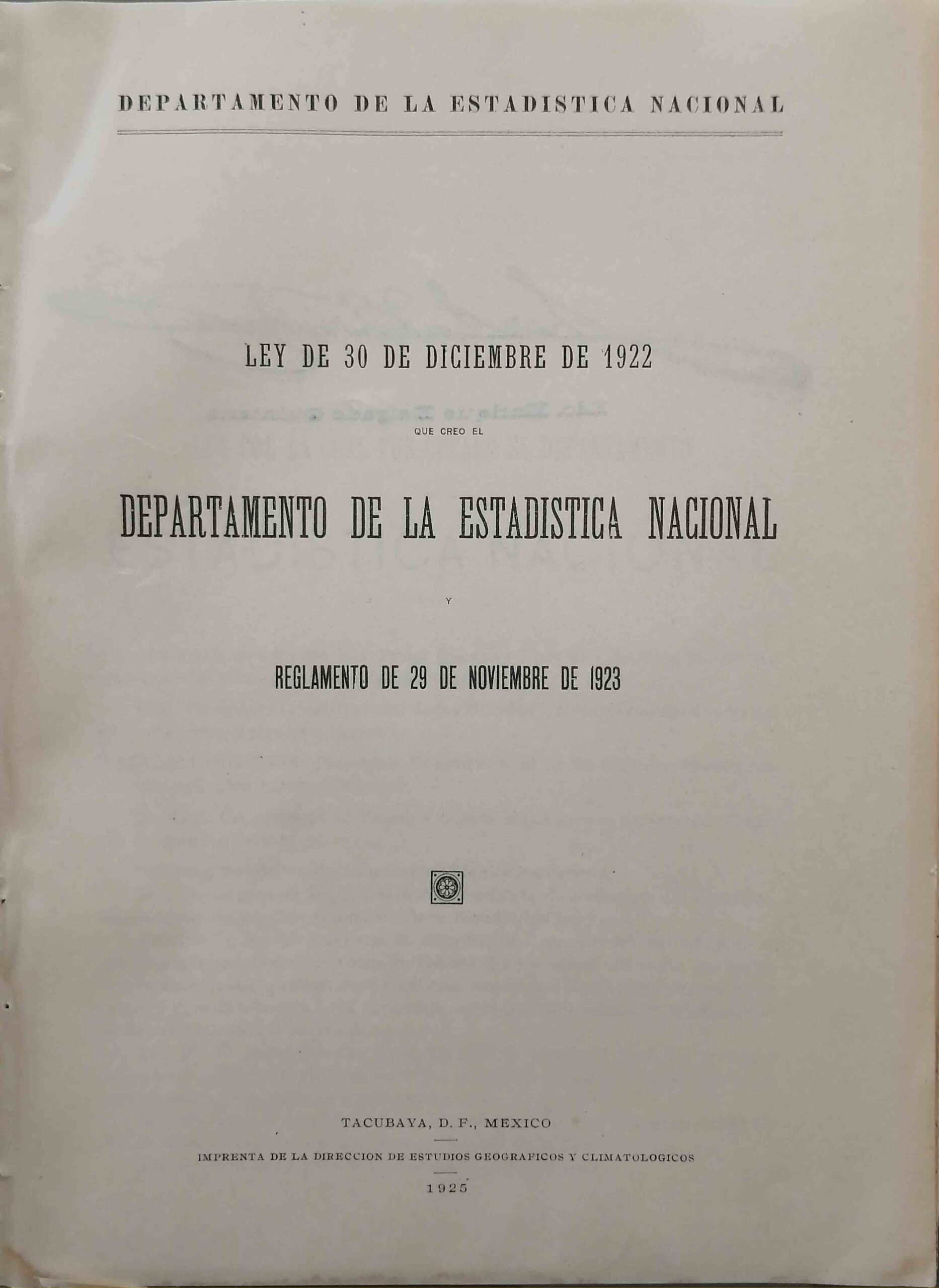 DEPARTAMENTO DE LA ESTADISTICA NACIONAL. LEY DE 30 DE DICIEMBRE DE 1922 QUE CREO EL DEPSTAMENTO DE LA ESTADISTICA NACIONAL. REGLAMENTO DE 29 DE NOVIEMBRE DE 1923