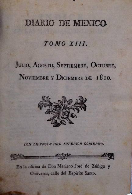DIARIO DE MEXICO. TOMO XIII. JULIO, AGOSTO, SEPTIEMBRE, OCTUBRE, NOVIEMBRE Y DICIEMBRE DE 1810. CON LICENCIA DEL SUPERIOR GOBIERNO. (DEL NUM. 1733 AL NUM. 1916. 31 DE DIIEMBRE DE 1810)