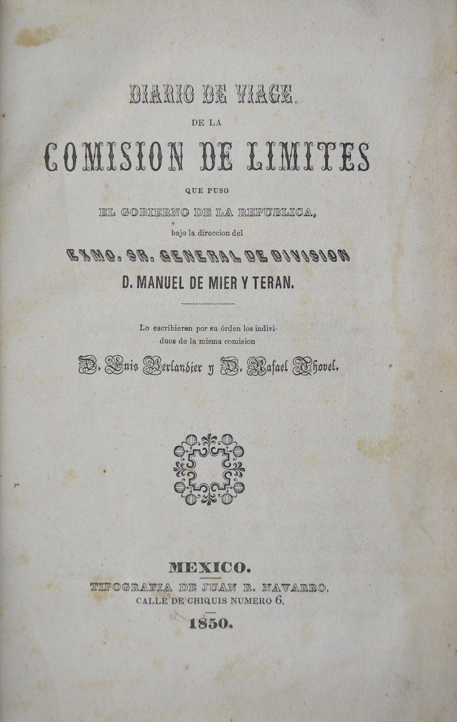 DIARIO DE VIAGE DE LA COMISION DE LIMITES QUE PUSO EL GOBIERNO DE LA REPUBLICA, BAJO LA DIRECCION DEL EXMO. SR. GENERAL DE DIVISION D. MANUEL DE MIER Y TERAN