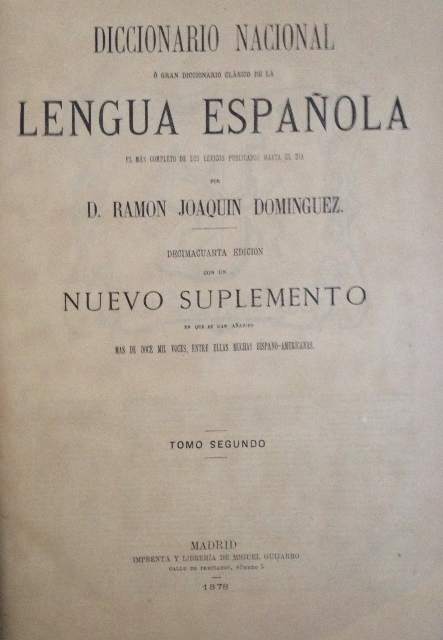 DICCIONARIO NACIONAL O GRAN DICCIONARIO CLASICO DE LA LENGUA ESPAÑOLA. EL MAS COMPLETO DE LOS LEXICOS PUBLICADOS HASTA EL DIA. POR D. RAMON JOAQUIN DOMINGUEZ . DECIMACUARTA EDICION CON NUEVO SUPLEMENTO. TOMO SEGUNDO