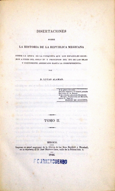 DISERTACIONES SOBRE LA HISTORIA DE LA REPUBLICA MEGICANA. DESDE LA EPOCA DE LA CONQUISTA QUE LOS ESPAÑOLES HICIERON A FINES DEL SIGLO XV Y PRINCIPIOS DEL XVI DE LAS ISLAS Y CONTINENTE AMERICANO HASTA LA INDEPENDENCIA. TOMO II