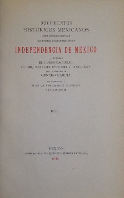DOCUMENTOS HISTORICOS MEXICANOS. OBRA CONMEMORATIVA DEL PRIMER CENTENARIO DE LA INDEPENDENCIA DE MEXICO. TOMO II