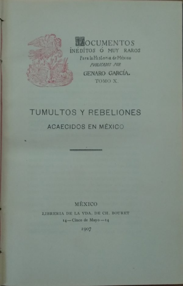 DOCUMENTOS INEDITOS O MUY RAROS PARA LA HISTORIA DE MEXICO. TOMO X. TUMULTOS Y REBELIONES ACAECIDOS EN MEXICO.