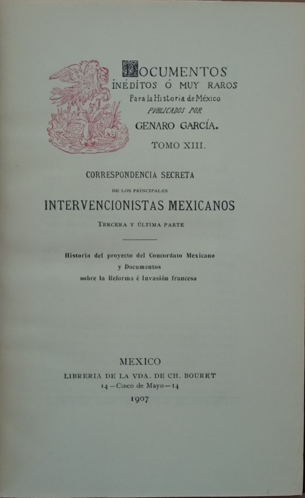 DOCUMENTOS INEDITOS O MUY RAROS PARA LA HISTORIA DE MEXICO. TOMO XIII. CORRESPONDENCIA SECRETA DE LOS PRINCIPALES INTERVENCIONISTAS MEXICANOS. TERCERA Y ULTIMA PARTE.