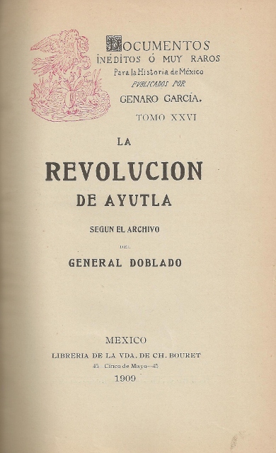 DOCUMENTOS INEDITOS O MUY RAROS PARA LA HISTORIA DE MEXICO. TOMO XXVI. LA REVOLUCION DE AYUTLA SEGUN EL ARCHIVO DEL GENERAL DOBLADO.