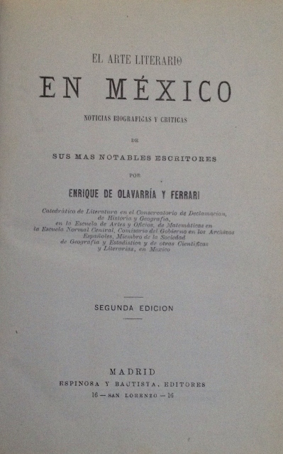 EL ARTE LITERARIO EN MEXICO. NOTICIAS BIOGRAFICAS Y CRITICAS DE SUS MAS NOTABLES ESCRITORES