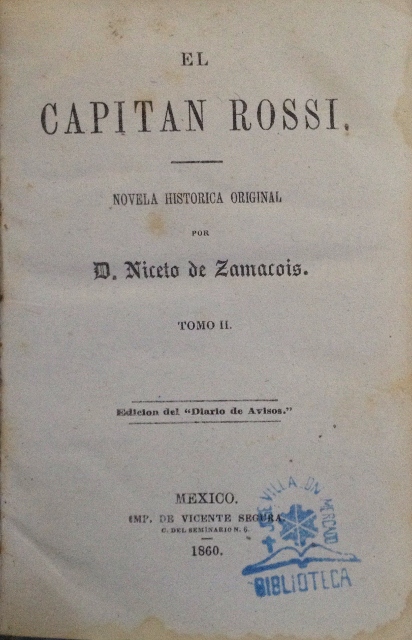 AUTOR: ZAMACOIS (NICETO) EDITOR: IMP. DE VICENTE SEGURA EDICIÓN: S. E. AÑO: 1860 LUGAR: S. L. PAÍS: MEXICO PÁGINAS: 496 PP. MAS INDICE TEMARIO: ANTIGUO. LITERATURA ID: 58.A