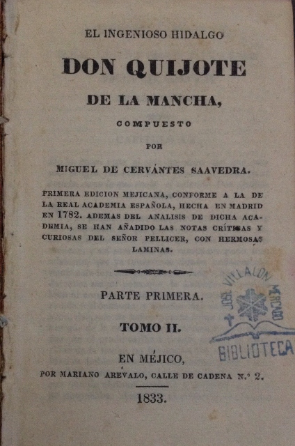 EL INGENIOSO HIDALGO DON QUIJOTE DE LA MANCHA, COMPUESTO POR MIGUEL DE CERVANTES SAAVEDRA. PARTE PRIMERA. TOMO II