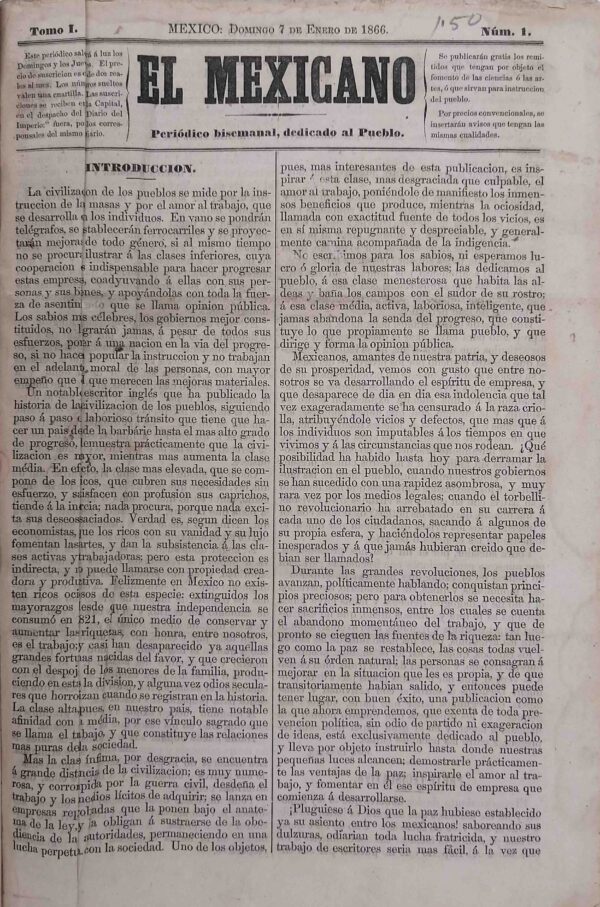 AUTOR: S. A. EDITOR: IMPRENTA IMPERIAL EDICIÓN: S. E. AÑO: 1866 LUGAR: S. L. PAÍS: MEXICO PÁGINAS: TEMARIO: ANTIGUO. HEMEROTECA ID: PR.9