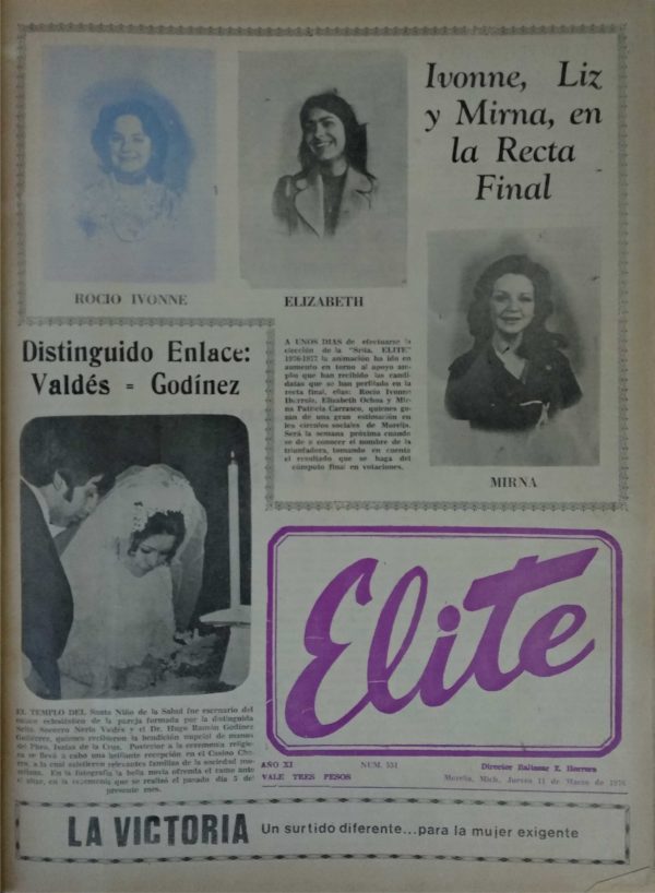 AUTOR: S. A.EDITOR: S. E.EDICIÓN: S. E.AÑO: 1976LUGAR: MORELIA, MICH.PAÍS: S. P.PÁGINAS: TEMARIO: HEMEROTECA. ELITEID: PR7516