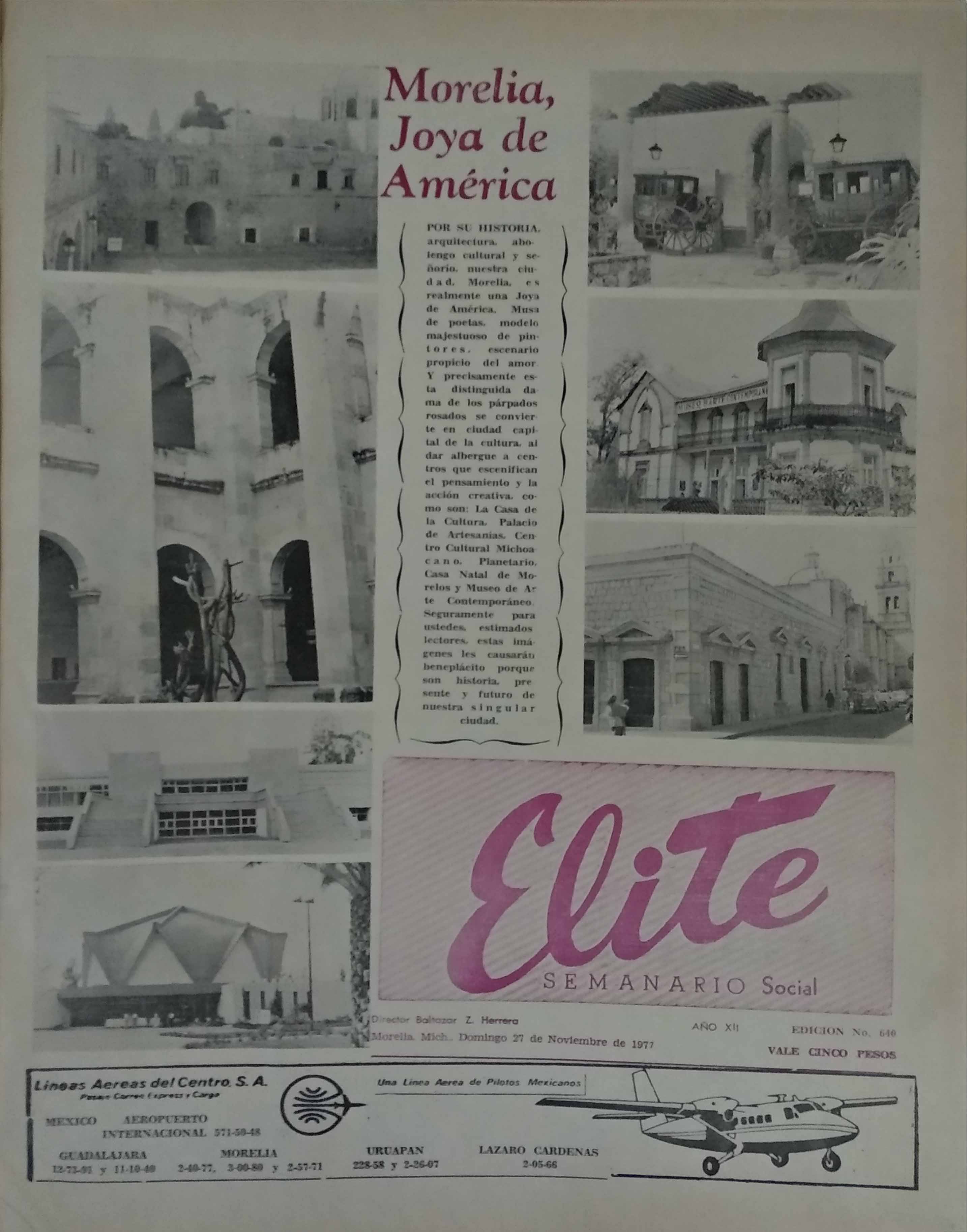 AUTOR: S. A.EDITOR: S. E.EDICIÓN: S. E.AÑO: 1977-1978LUGAR: MORELIA, MICH.PAÍS: S. P.PÁGINAS: TEMARIO: HEMEROTECA. ELITEID: PR7519