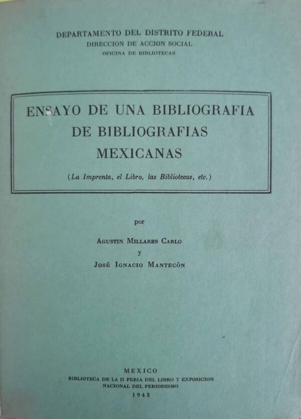 ENSAYO DE UNA BIBLIOGRAFIA DE BIBLIOGRAFIAS MEXICANAS (LA IMPRENTA, EL LIBRO, LAS BIBLIOTECAS, ETC.)