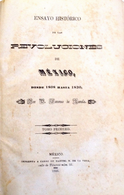 ENSAYO HISTORICO DE LAS REVOLUCIONES DE MEXICO, DESDE 1808 HASTA 1830, POR D. LORENZO DE ZAVALA. TOMO PRIMERO