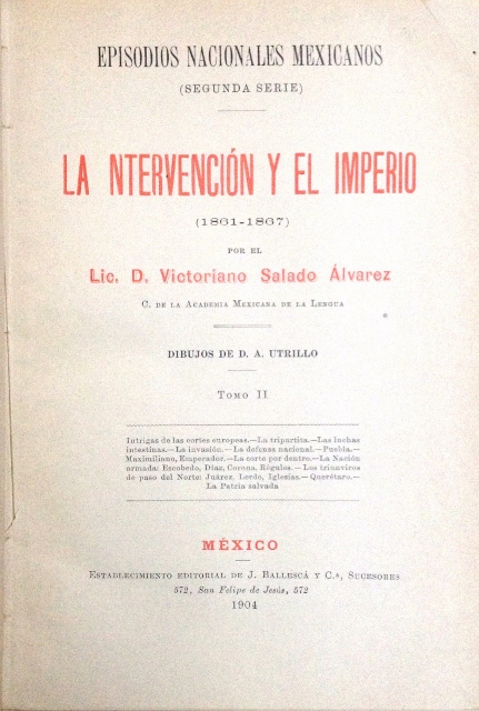 EPISODIOS NADIONALES MEXICANOS (SEGUNDA SERIE). LA INTERVENCION Y EL IMPERIO (1861 – 1867) POR EL LIC. D. VICTORIANO SALADO ALVAREZ. TOMO II