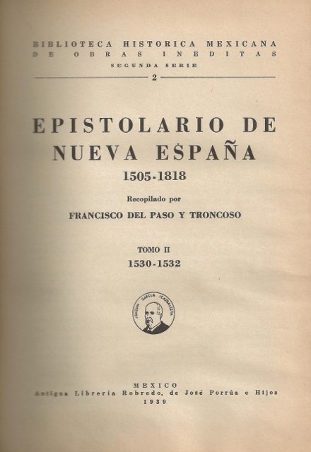 EPISTOLARIO DE NUEVA ESPAÑA 1505 – 1818. RECOPILADO POR FRANCISCO DEL PASO Y TRONCOSO. TOMO II 1530 – 1532