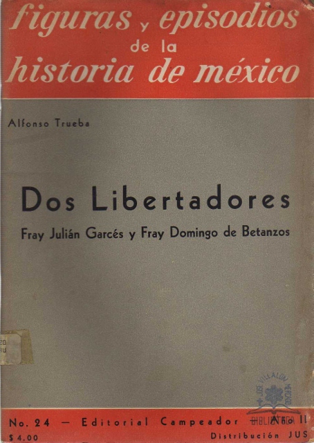 FIGURAS Y EPISODIOS DE LA HISTORIA DE MEXICO. DOS LIBERTADORES. FRAY JULIAN GARCES Y FRAY DOMINGO DE BETANZOS. No 24