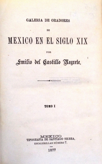 GALERIA DE ORADORES DE MEXICO EN EL SIGLO XIX POR EMILIO DEL CASTILLO NEGRETE. TOMO I