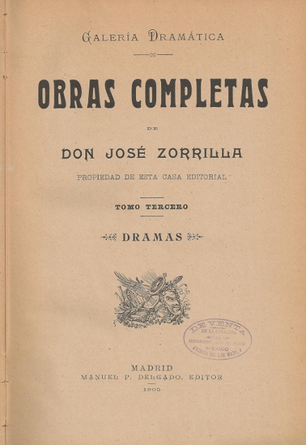 AUTOR: ZORRILLA (JOSE)EDITOR: MANUEL P. DELGADO, EDITOREDICIÓN: S. E.AÑO: 1905LUGAR: MADRIDPAÍS: S. P.PÁGINAS: 483 PP.TEMARIO: LITERATURA MEXICOID: 2969.01